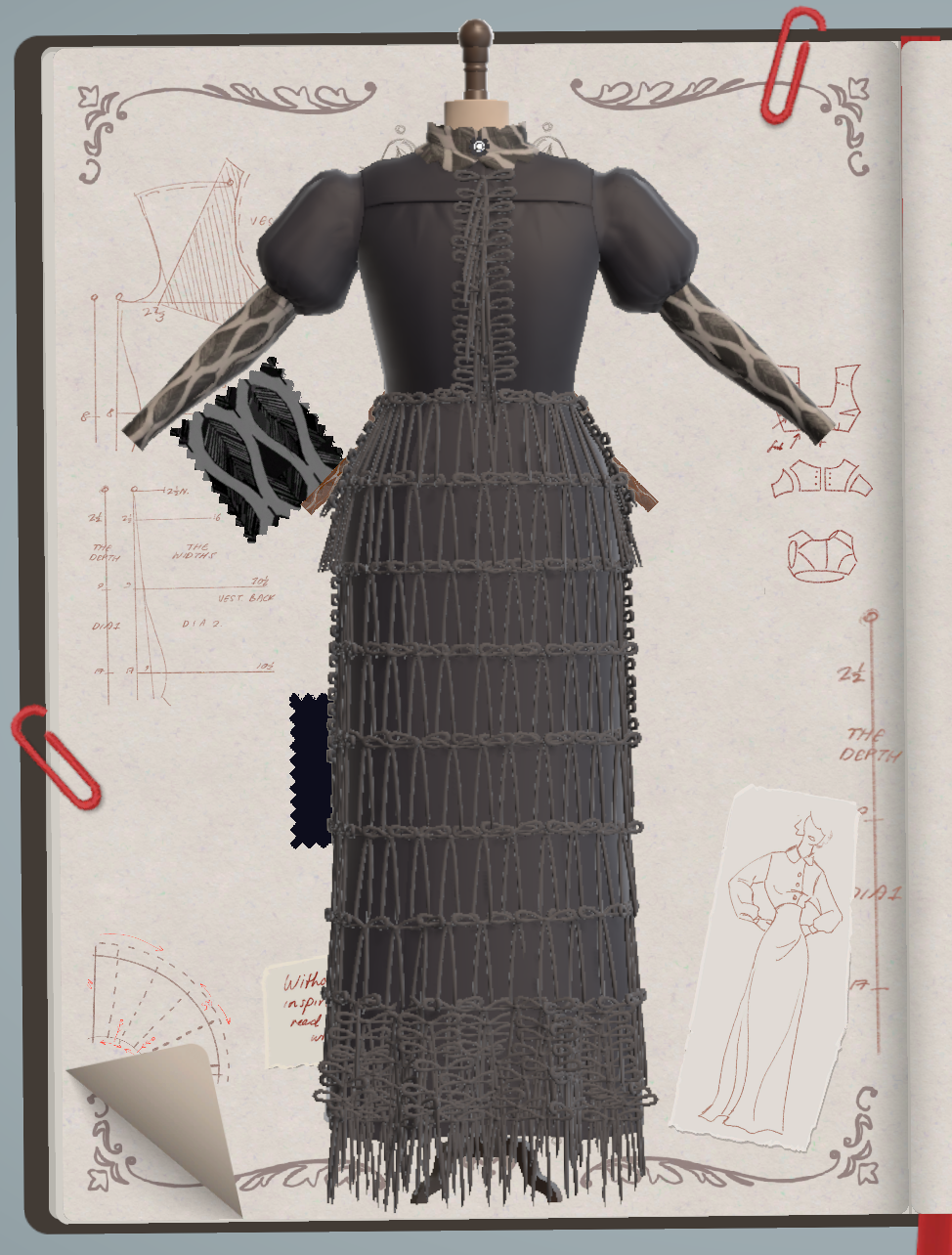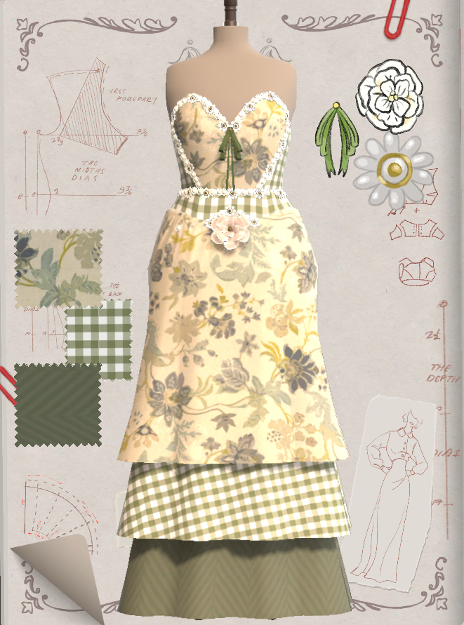 Once you've cut the entirety of your shapes in your desired materials we move to the assembling and sewing part. On the bodice you drag the pieces and then click on the icon to sew the patterns together. For sewing, you have to move your mouse as accurately as possible to make straight lines and not going overboard the fabric.