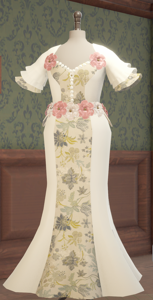 You will then create the pattern for the dress by customizing the sleeves, skirt, bodice and collar. Then you are able to choose fabrics references for the parts and coloring the base.